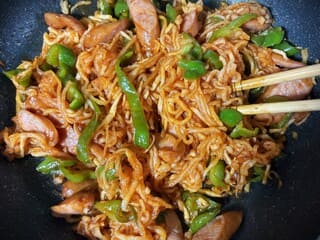 ③切り干し大根、みりん、ケチャップを加えてサッと炒め、塩こしょうで味をととのえる。