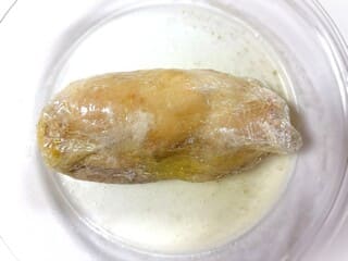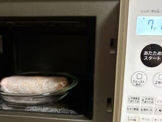 ④電子レンジ500wで7分10秒加熱する。(600wなら6分を目安に加熱)