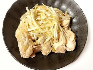 ⑥食べやすい厚さに切り、味つけしたネギをのせて完成です。